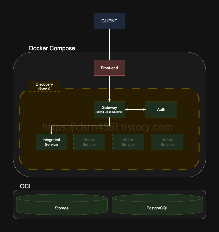 또한, 프로토타입은 빠른 개발을 위해 통합된 서비스 형식(모놀리식)을 차용하며, 차후 리팩토링을 통해 마이크로 서비스들을 나눌 예정이다.